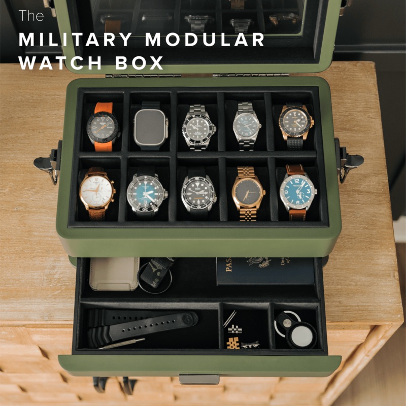 OG MATTE GREEN MILITARY – We carefully selected the exterior color of the Military Watch Box to reflect some of our favorite original military color schemes. This modernized throwback pays homage to the design and ruggedness of military storage equipment.