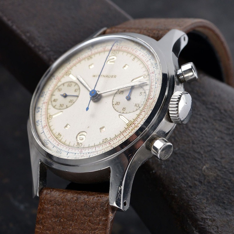 Hereby we offer you a beautiful steelchronograph from the 50s. This vintage Wittnauer displaysall the style of that era with its waterproof-style steel case and sector dial with recessed numerals, which adds a lot of elegance and style to the watch. It shows a lot of feeling of the great steel chronos from the big P brand from that era. Thats what we love about this 35 mm watch..so much fun, style and reward for the money.