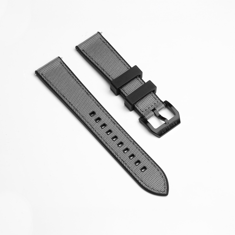 Made with FKM rubber with Nylon canvas stitched on top. The High gradeFluoro-Elastomer (FKM) rubber typically used in the aerospace and aviation industry for class leading durability.Excellent resistance to UV rays, extreme temperatures, mechanical stresses, chemicals, and seawater. Strap is non-toxic, non-marking, non-allergen and does not attract dust.