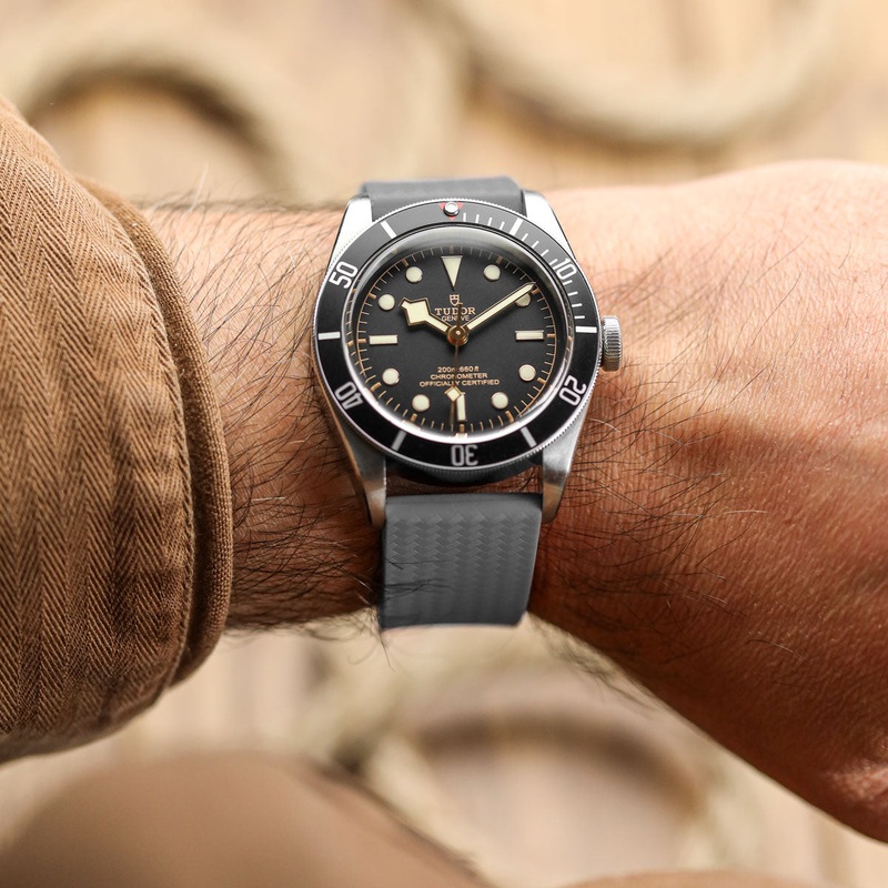 Coming from Bonettos factory in northern Italy, this strap delivers strength, suppleness, comfort and simplicity. Its special rubber formulation is waterproof, saltwater and UVA-resistant for years of on-wrist pleasure. Not to mention it’s non-toxic and non-allergenic. Its also reversible, in case you want a change of texture.