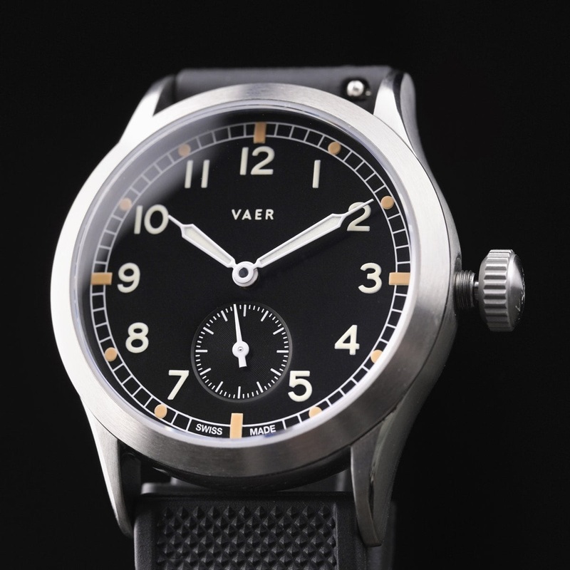 A special edition homage to a military timekeeping icon. Combining the prestige of European luxury with the everyday utility at the heart of our brand. Our decision to pursue Swiss manufacturing for the A12 was motivated by our goal to create a respectful homage to the Swiss Made “Dirty Dozen” military watches of World War II. Functional, attractive and historically relevant, the Vaer Dirty Dozen represents not only a continued investment in timeless, durable design but also our deep respect for the history of horology.
