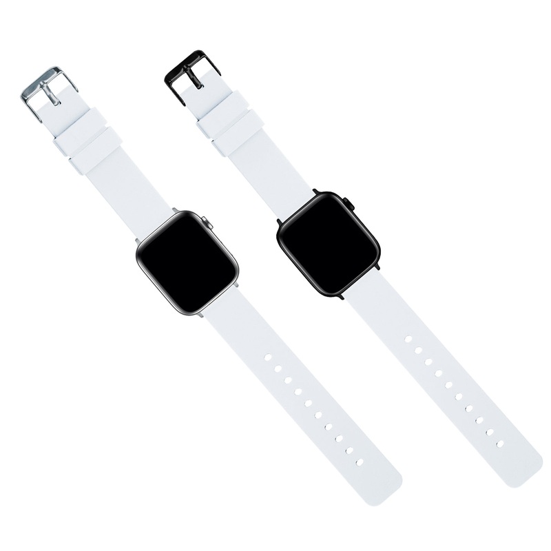 These silky soft white rubber watch straps are the perfect complement to any Apple Watch. These bands are constructed from the highest quality high tensile silicone and stainless steel hardware, making them silky smooth, yet durable.