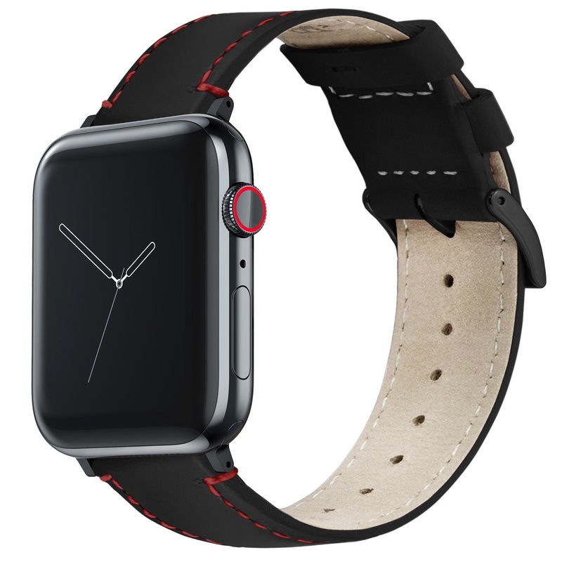 Apple Watch Black Leather Crimson Red Stitching Watch Band
