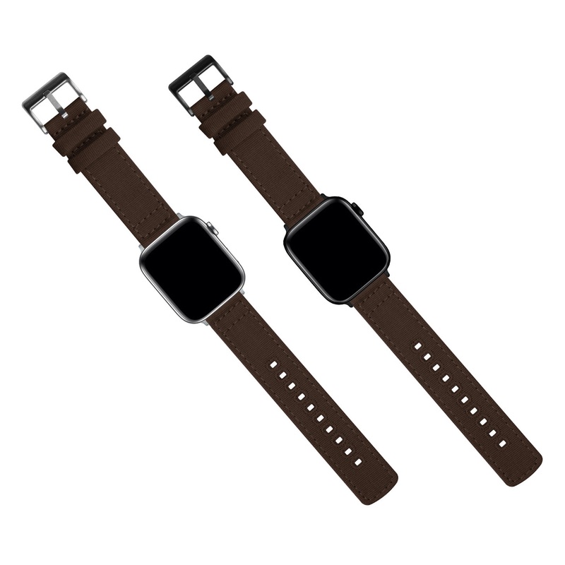 Our canvas bands are meticulously crafted from highly durable cotton canvas and embroidered for style and strength. Machine washable and extremely dependable, these chocolate brown bands will add character to any Apple Watch. Pair with our Silicone or Leather Apple Watch Bands to take full advantage of the opportunity to ‘Switch it Up.’