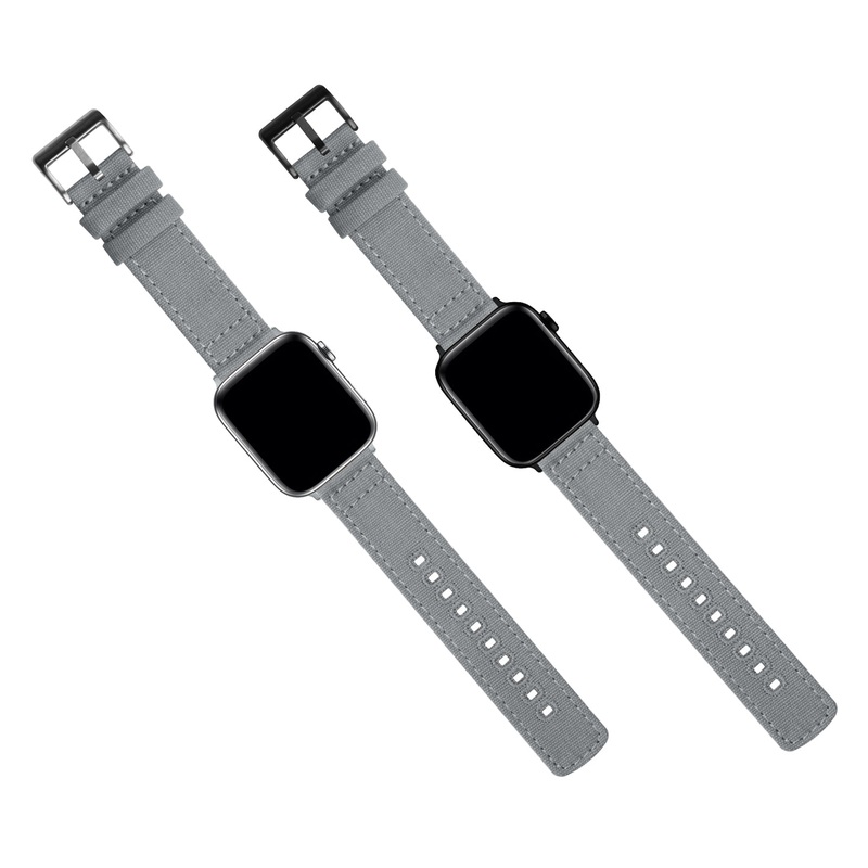 Our canvas Apple Watch bands are meticulously crafted from highly durable cotton canvas and embroidered for style and strength. Machine washable and extremely dependable, these cool grey Apple Watch Bands will add character to any Apple Watch. Pair with our Silicone or Leather Apple Watch Bands to take full advantage of the opportunity to ‘Switch it Up.’