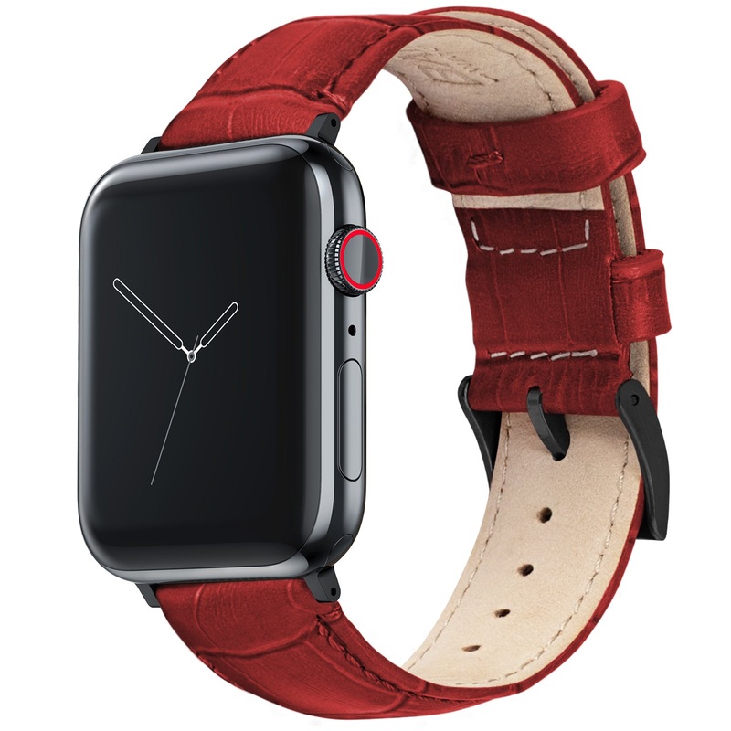 These Red Alligator Grain Leather watch bands will take any Apple Watch to the next level. These straps are designed with a 2mm taper from watch head to buckle and are padded for style and comfort. Crafted from hand selected top grain leather and embossed with premium alligator texture, these Apple Watch bands mean business.