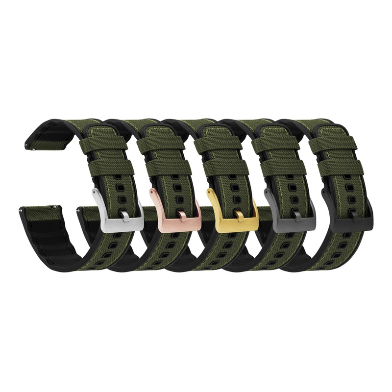 This Army Green Cordura Fabric and Silicone Watch Band offer the best of both worlds. Engineered to be 100% waterproof, the band is perfect for year-round-wear, no matter your location. We’ve opted for the best, partnering with Cordura brand fabrics, recognized for their long-lasting durability, resistance to abrasions, and waterproof technology. Thanks to the flexible, high tensile silicone base and the 316L stainless steel hardware, the comfortable fit that keeps you coming back to BARTON prevails. Featuring silicone-lined eyelets, premium nylon stitching, and a locking keeper loop, this band is ready for action — Whether you’re headed to a backyard BBQ or hike through Big Bend, we’ve got you covered.
