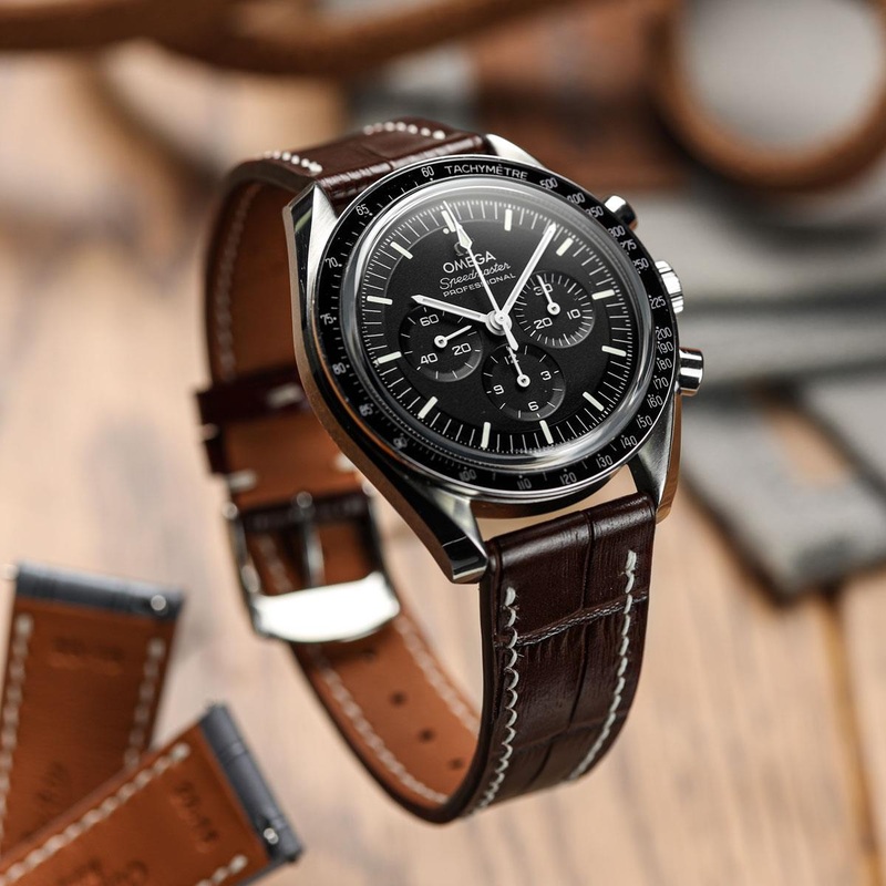 Arnhem Hand-Stitched Calf Leather Watch Strap – Alligator Print Chestnut Brown