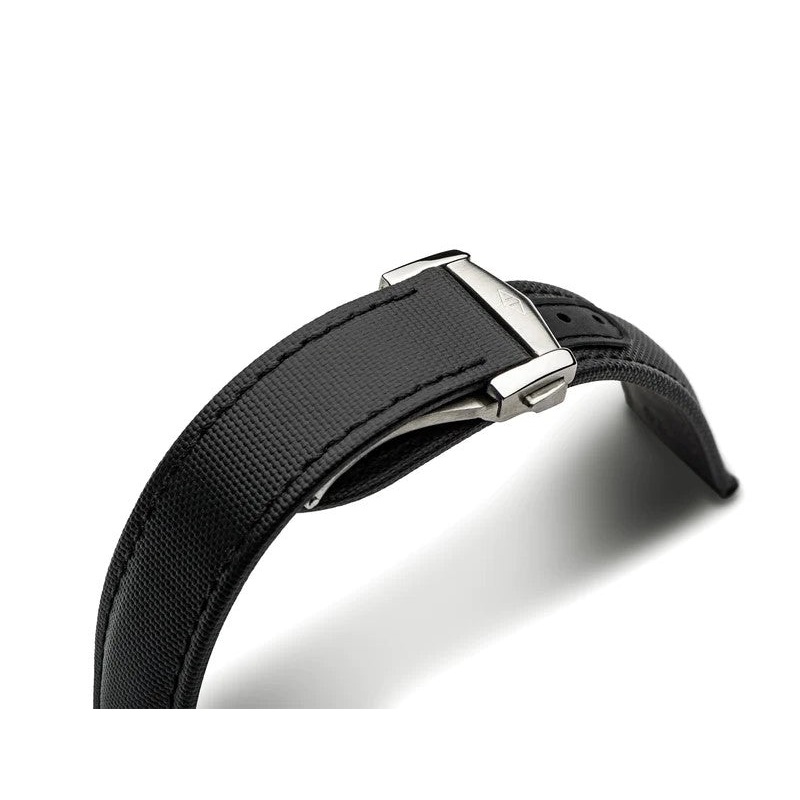 Ideal for Artem’s Loop-Less sailcloth-style watch strap, the Loop-Less deployant clasp has been designed with the discerning watch enthusiast in mind. Every aspect of this buckle has been selected with care, from the heft on down to the secure closing mechanism. Double pusher buttons enable effortless functionality, while the subtle curvature creates optimal conformity on the wrist. Shown here in premium 316L stainless steel with a flawless brushed and polished finish.