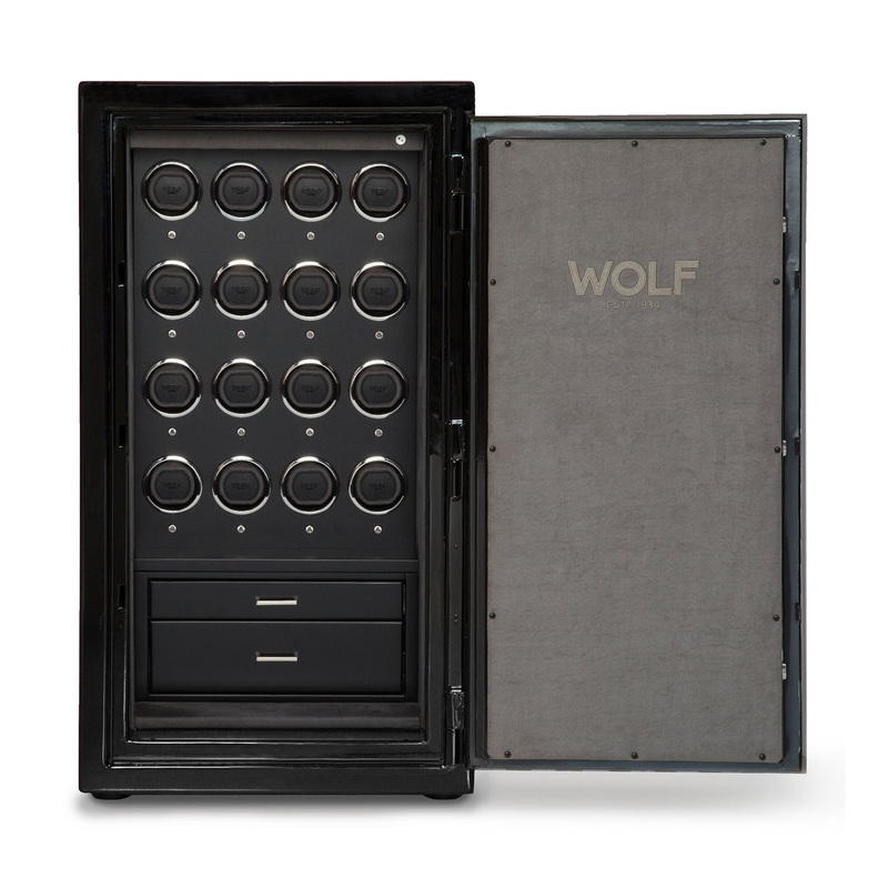 - Additional App controls: Effortlessly control winder modules independently or simultaneously with WOLF app. Customize you safe with the ability to name the safe and each winder. Upload your watches or personal photos as background image. i-Mode feature controls LED light with the ability to set on/off timers based on your schedule. Password protected app control. Register your warranty from your phone.
