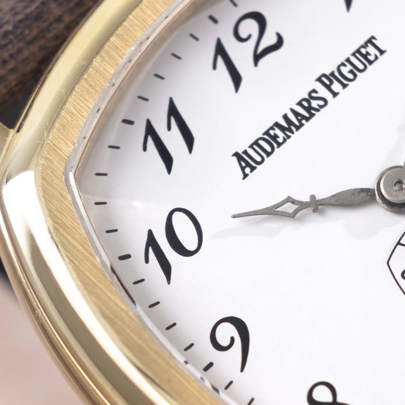 The Audemars Piguet “John Schaeffer” collection hails from the 1990s, when AP introduced its cushion-shaped line, capturing the essence of haute horology. This particular model, crafted from 18k yellow gold in a classic 33mm cushion-shaped case, showcases a glossy white dial with striking black-painted Breguet numerals. The John Schaeffer line was a precursor to AP’s Tradition collection and continues to be revered by purists and collectors alike.