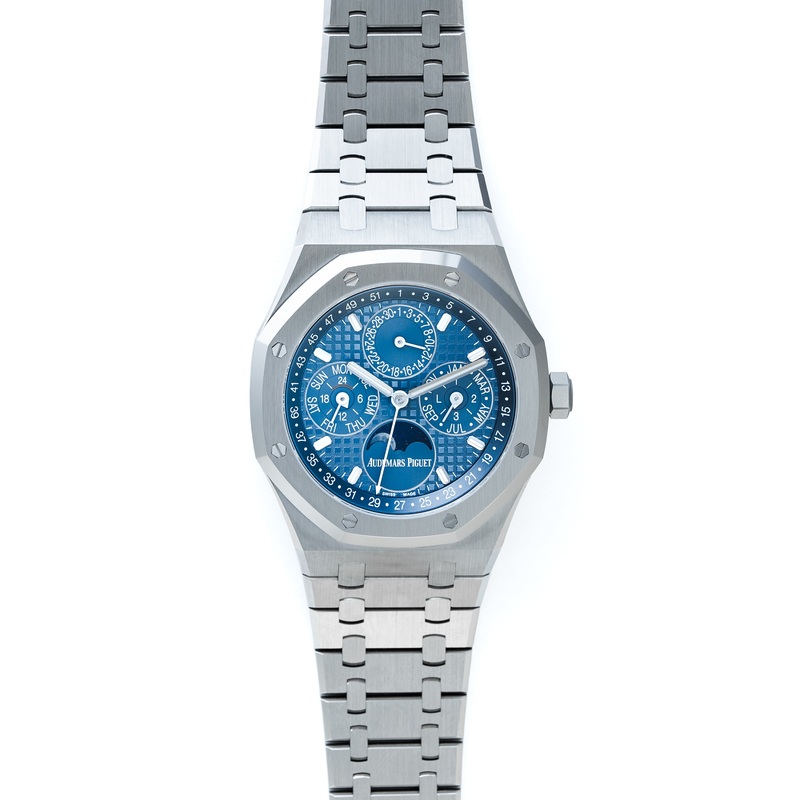 The 26674ST blends the full perpetual calendar complication with modern Royal Oak styling. It offers all complicationsday, date, month, week, leap-year, and moonphasein a slim, sporty package suited for every occasion.