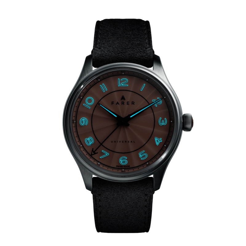 Three hand automatic watch with a metallic blue textured dial coated with a clear polished lacquer.