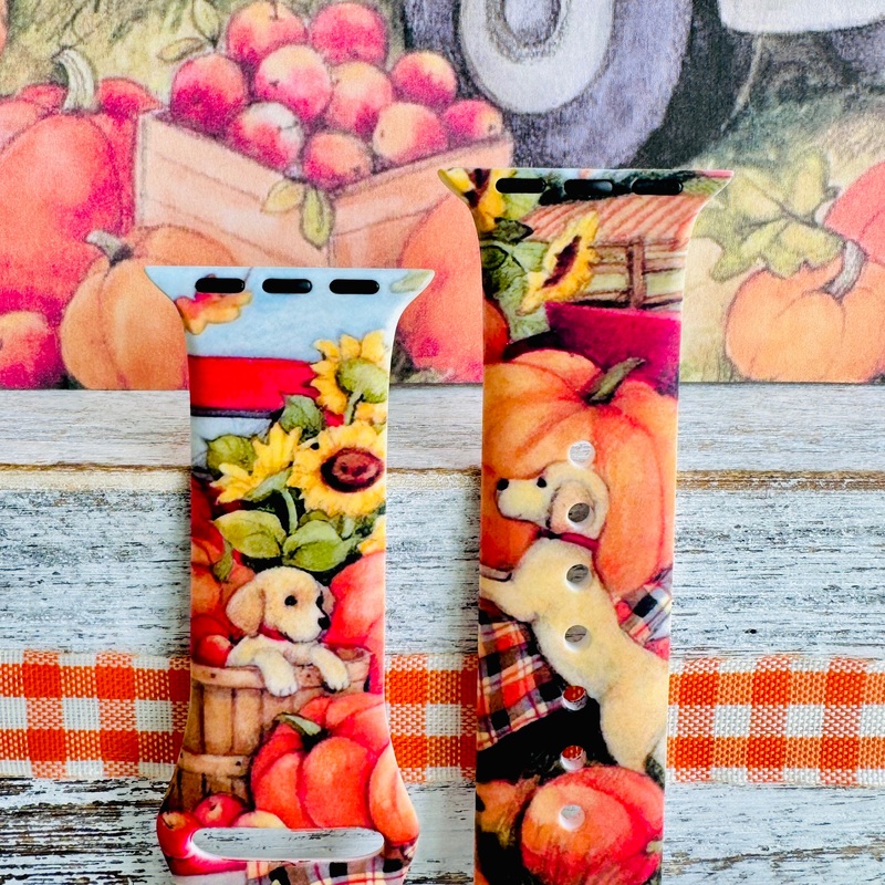 Autumn Paws & Pumpkins Print Silicone Band For Apple Watch