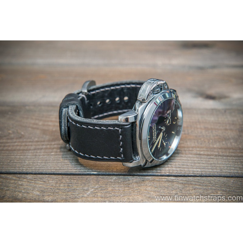 The watch strap is made of the finest Badalassi Carlo leather from Italy. The watch strap has a unique rustic look and deep color. The leather gets beautiful patina with the time. Color: Nero, pull-up.