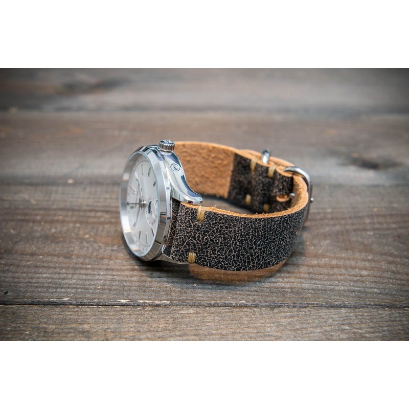 The watch strap is made of the finest Badalassi Carlo leather from Italy. The watch strap has a unique rustic look and deep color. The leather gets beautiful patina with the time. Color:Greyroad, pull-up.