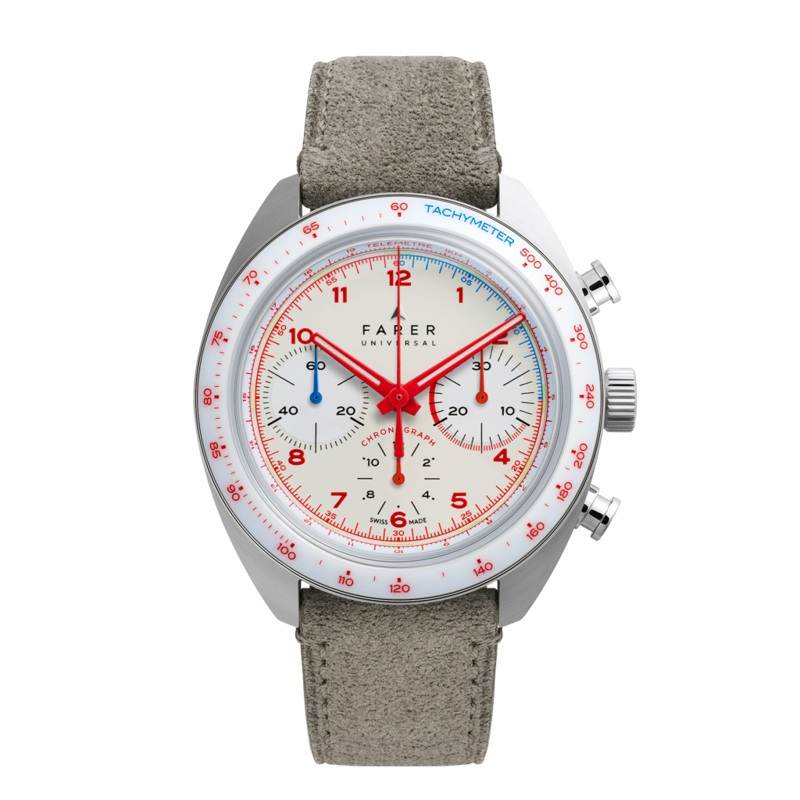 Titanium Chronograph Sport watch with matte off-white dial, 3 sub-dials and St Venere leather strap.