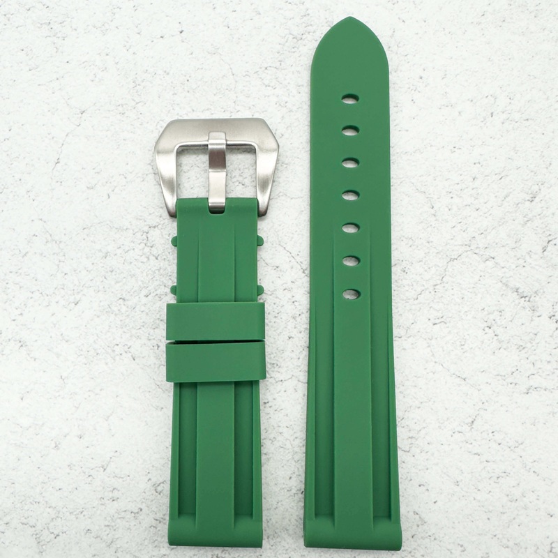 Big Steel Buckle Silicone Watch Strap | GREEN | 20 22 24 mm