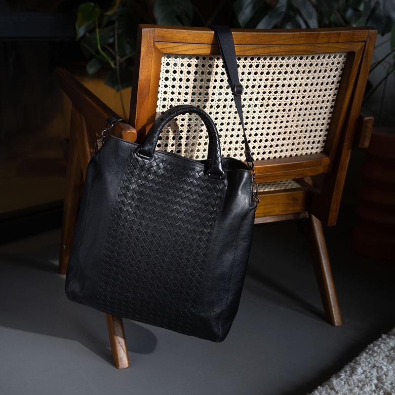 Oozing that certain Italian cool, this black calf leather vertical bag is sure to turn heads when you step out.