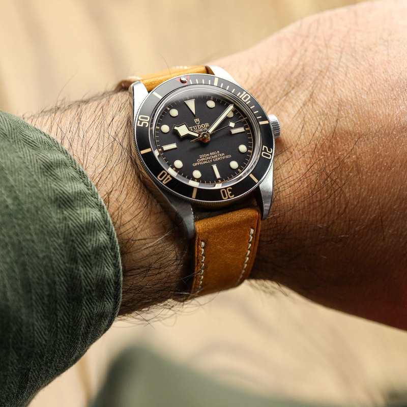 This watch strap is crafted from genuine Badalassi Carlo “Pueblo” vegetable-tanned Italian calf leather. As a result, this strap will develop patina over time and only get better as it wears in and begins to age.