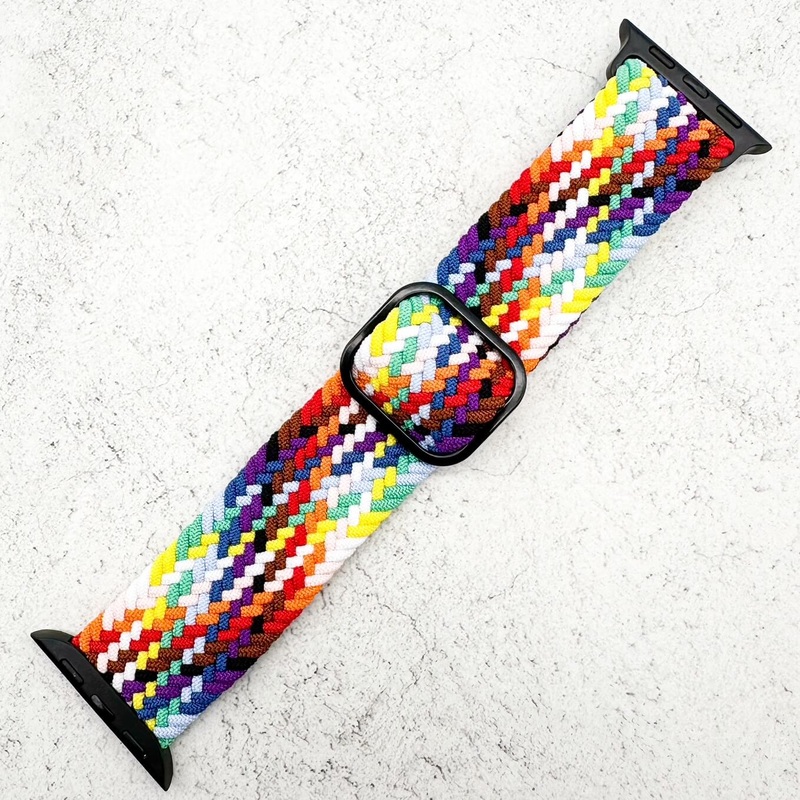 Stretch. Slide. Go. Soft, breathable, and endlessly adjustable – this Braided Elastic Watch Strap in Rainbow with Buckle keeps your Apple Watch feeling weightless and looking sharp. Designed to flex with your lifestyle, from early mornings to late nights.