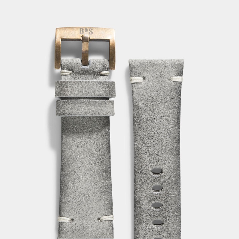 All straps in the Bronze Perfect Match collection share a 23 mm lug width, a slightly tapered fit and our exclusive branded Brass Colored Square Buckle. This version features one of our favorite leather types, the Rugged Grey.Asupple leather with a lot of depth thatfeatures a white side stitch.Handcrafted by Italian Artisan JPM.
