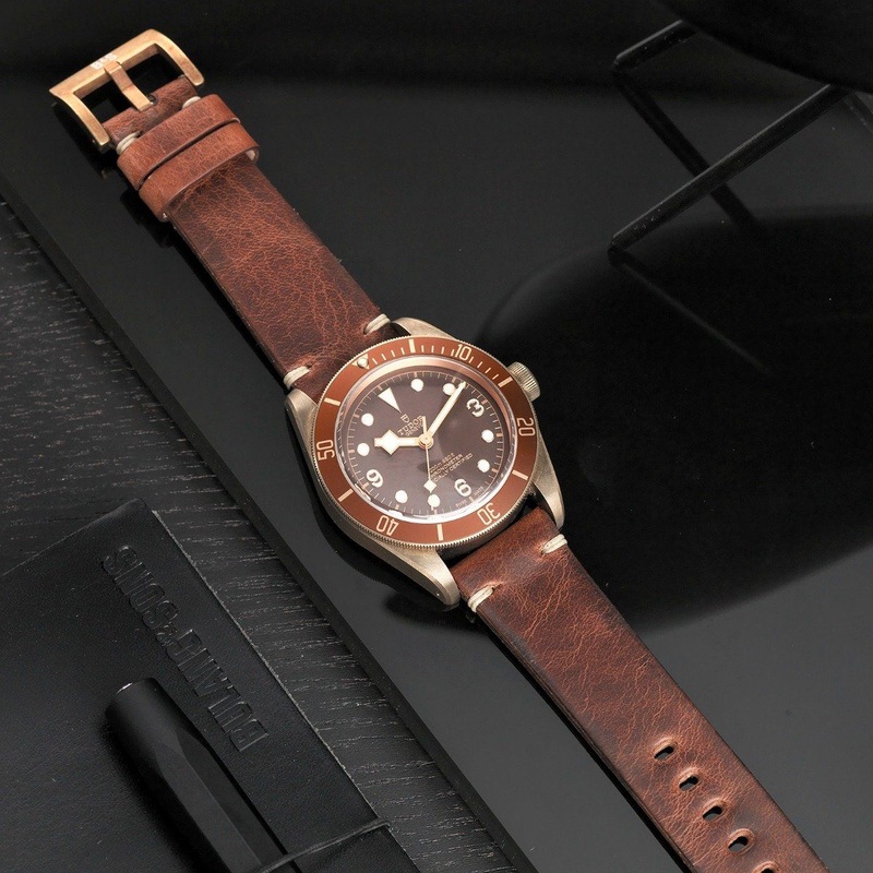 We’re fans of Tudor watches old and new, and with the recent Heritage Black Bay Bronze model, they’ve really taken the biscuit. The materials, the tones and details this timepiece is just spot on! Since we’re known to like to style things our way, we felt a spontaneous urge to design an exclusive range of perfectly matching straps for the Tudor Black Bay Bronze!