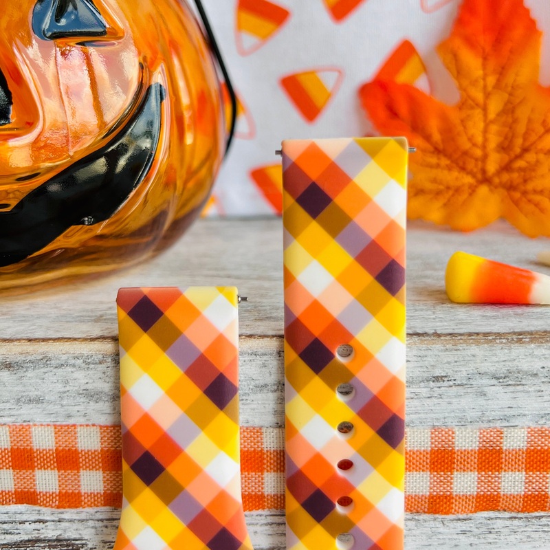 Candy Corn Gingham Print Silicone Band For Fitbit Versa 1/2