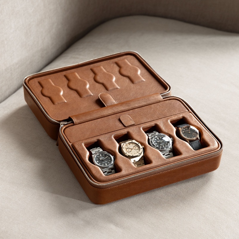 Elevate your watch collection with the Caramel Brown Luxury Leather Watch Box by JPM. Featuring rich caramel brown leather and a luxurious design, it’s the perfect accessory to showcase and protect your valuable timepieces. This watch box exudes elegance and sophistication, making it a must-have for any watch enthusiast.