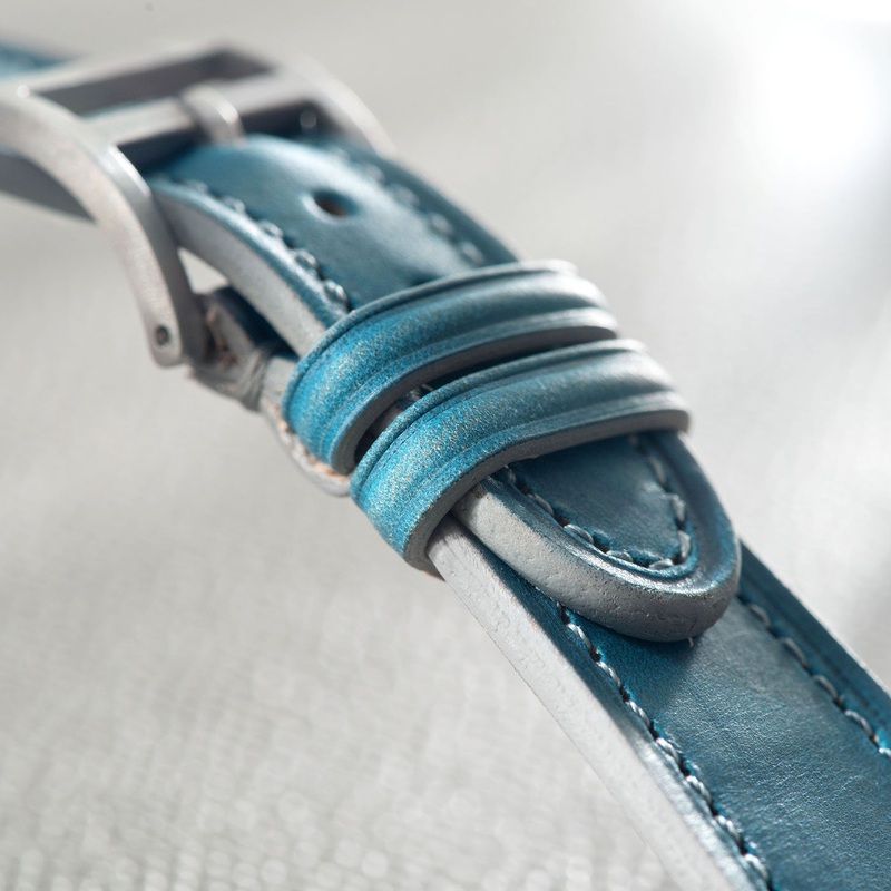 The Chteau de Cassis strap is handmade in Italy from the finest Horween leather and unites all features of the Joie de Vivre Collection: an extra thin cut quality and shape, our signature brushed metal buckle, intricate heat lines next to the stitching and greypainted edges for that certain je ne sais quoi.