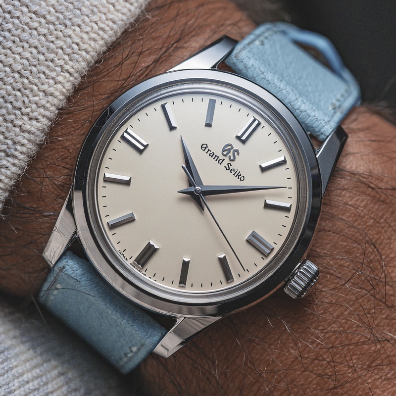 Excerpt from Strap Guide by Dany: “Chevre straps are not very common. Produced in the south of France, this goatskin leather has a smooth surface and slight gloss. It feels natural, raw and unique. Thats not all, chevre straps are highly water and scratch resistant. The Colibri light blue color is very refreshing and ideal for casual attire.”