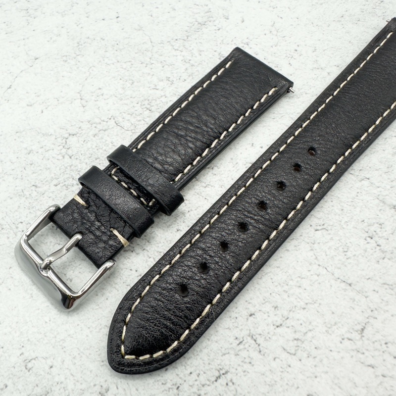 Rugged. Elegant. Effortless. Discover the blend of timeless style and durability with our Crazy Horse leather black watch strap. Crafted from premium cowhide, its rugged charm only improves with age. Quick-release spring bars make switching straps a breeze.