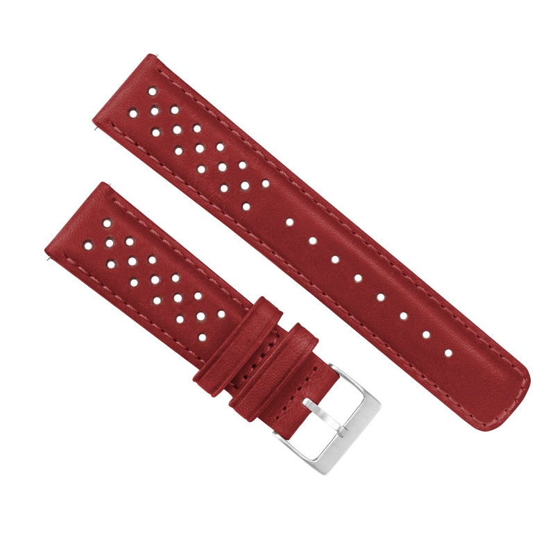 Skillfully crafted to evoke the nostalgia of 1960s & 1970s speed and motorsport, our Horween Racing Collection pairs perfectly with chronographs, smartwatches, and tool watches alike. The distinguishing perforations, originally designed to create a breathable strap for racetrack drivers, now makes a signature statement on your wrist. Our version features Dublin Horween leather, 316L stainless steel hardware, and a soft top-grain Nubuck lining.