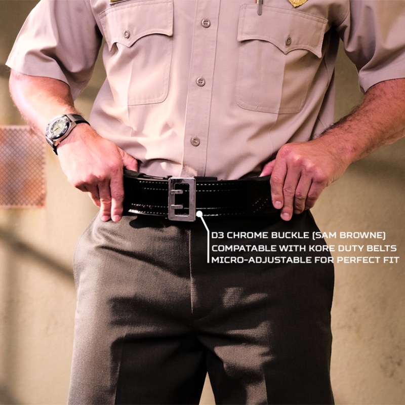 Every belt is cut-to-size, so youre guaranteed a custom fit without guesswork. Paired with our D3 Sam Browne buckleavailable in high-polished stainless steel chrome or brass with powder-coated aluminum accentsthe belt not only performs under pressure but looks sharp while doing it.