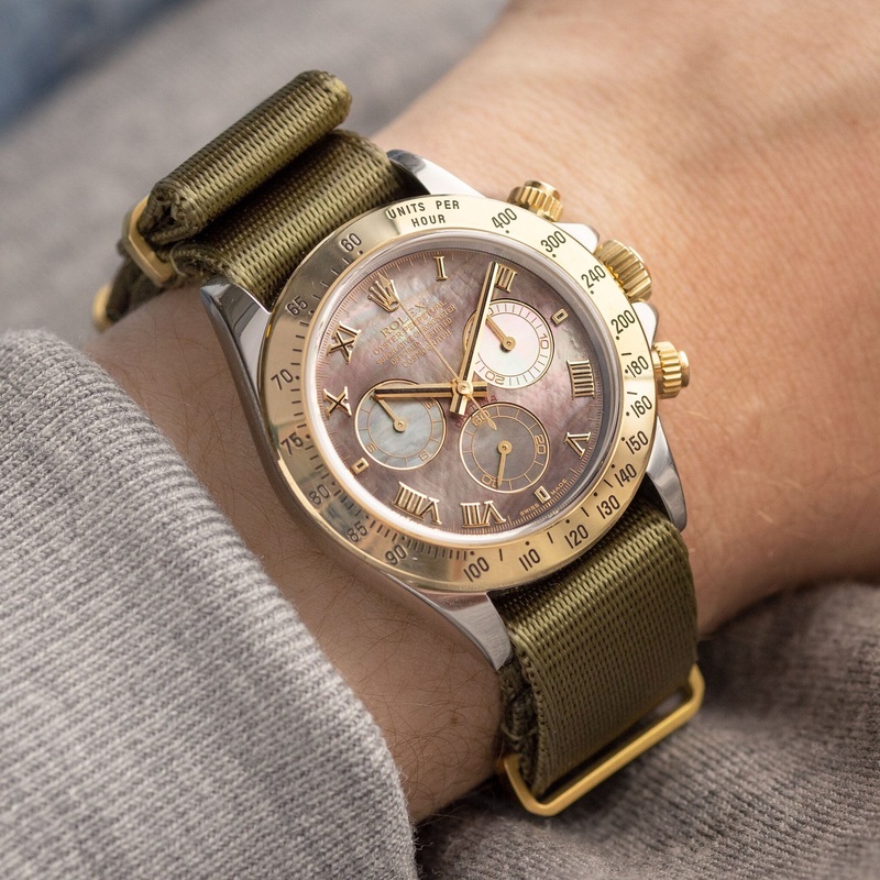 Deluxe Nylon Single Pass Watch Strap Olive Drab Green – Gold