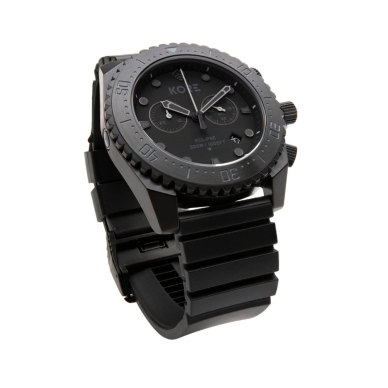 Includes:KORE ECLIPSE Swiss Chronograph Dive Watch, 2 micro-adjustable watch bands (Dive & Overland), and Ammo Case Watch Box