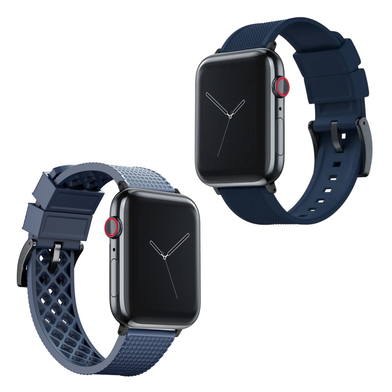 This no-nonsense bundle offers two bands for three easy swaps that are sure to take your beach, boat or lake outfit to the next level. Whether you are heading out for a lakeside swim in our Elite Silicone bandor snorkeling in the Tropical-Style band, our navy blue Elite Diver Apple Watch Band Bundle has you covered.