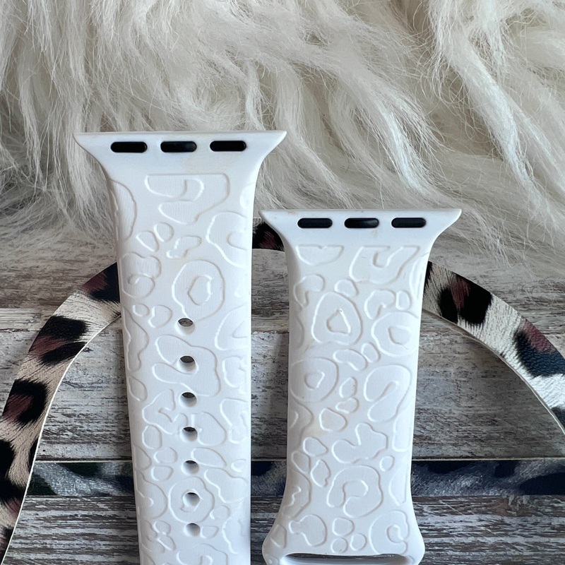 Engraved White Leopard Print Silicone Band For Apple Watch