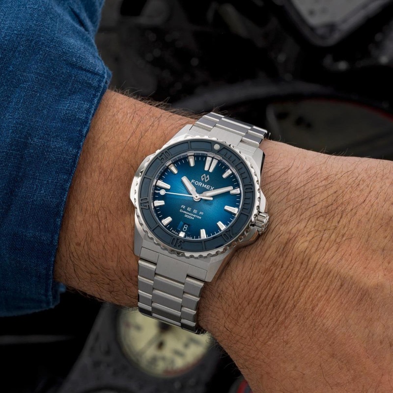 FORMEX Swiss Made Watches presents a more compact, smaller version of their popular 300-meter water resistant Reef divers collection, the Baby Reef. With its tool-free exchangeable bezels and straps, the Reef stands out as one of the markets versatile mechanical dive watches. Encased within a meticulously hand-finished 39.5mm stainless steel case is the heart of precision, a Chronometer-grade, officially certified Sellita SW300-1 Automatic movement, offering 56 hours of power reserve. Unique gradual fine-adjustment systems across all strap-and options noticeably increase wearing comfort on the wrist throughout the day.
