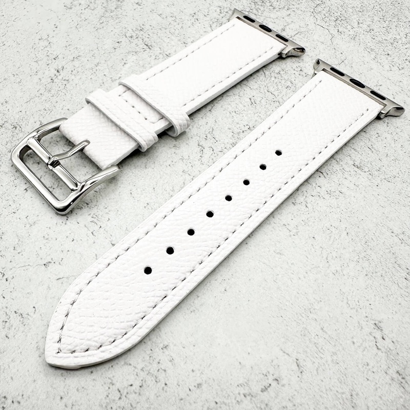 Sleek. Comfortable. Stylish. This genuine leather strap in White brings effortless sophistication to your Apple Watch. Soft, breathable, and durable, its designed for everyday wear, whether you’re at the office or out for the evening.