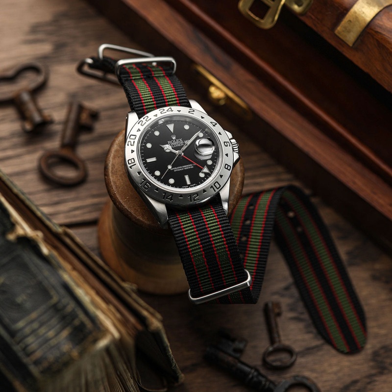This style of watch strap was originally developed in the 70s by the British Ministry of Defence (MOD). The strap was often called “G10” because of the requisition form that service personnel used to get their strap from Quartermaster’s Stores.