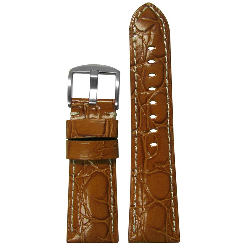 Glossy Embossed Leather Watch Band | Gator Print | Honey | Colored Stitch | for Panerai Radiomir