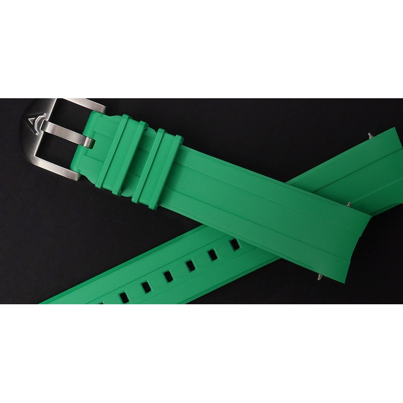 Green natural rubber strap with oversized 316L stainless steel buckle