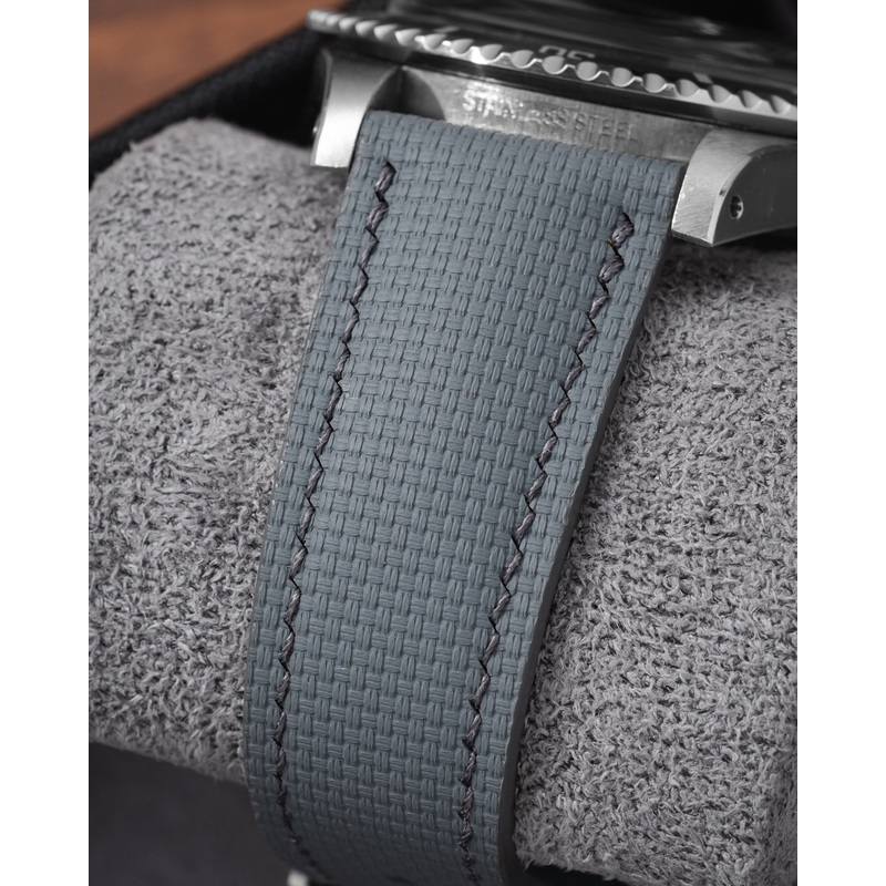 Introducing our innovative take on the Sailcloth strapcrafted from FKM rubber molded with a Sailcloth pattern. Weve seamlessly blended the classic, rugged aesthetic of Sailcloth with the modern advantages of FKM rubber. The result is a strap that offers the iconic look of Sailcloth while providing enhanced durability and comfort.