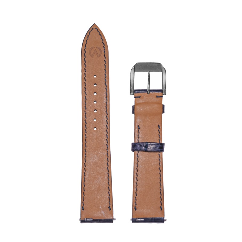 These alligator belly leather straps with tan lining and color-matched stitching were constructed by a master leather craftsman and are completely handmade. They boast rembord folded edge construction (the leather is folded around the edges to provide a seamless transition between the top and bottom of the strap), a rare touch that requires specialized knowledge to execute. Vegetable-tanned leather is used to provide tasteful padding. These straps are truly world-class and stands a cut above what youll typically find for sale.
