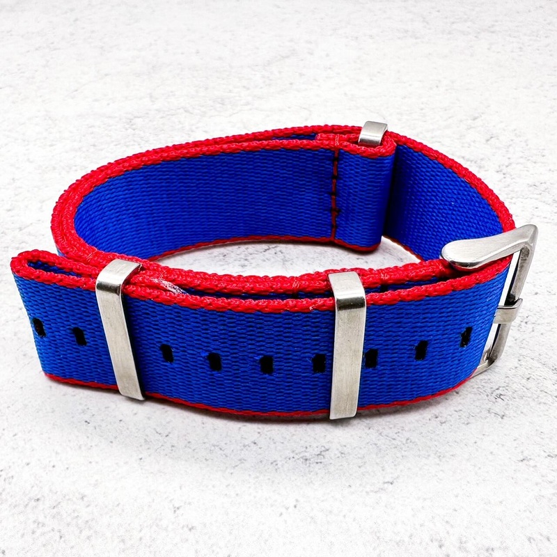 Be the first to review “Herringbone NATO Military Nylon Watch Strap | BLUE / RED | 20 22 mm”