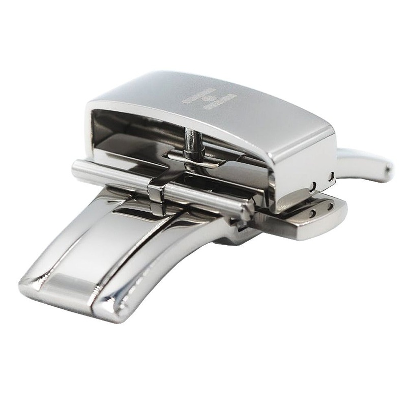 Perfect for dive and sport watches, Hirsch’s beautifully crafted butterfly-style folding deployant clasp is made from heavy gauge, solid polished stainless steel. With its handy push-and-click mechanism, the clasp replaces traditional pin buckles for an easier and more secure strap connection. It attaches to your strap with a threaded screw bar (this requires use of a small screwdriver or similar tool).