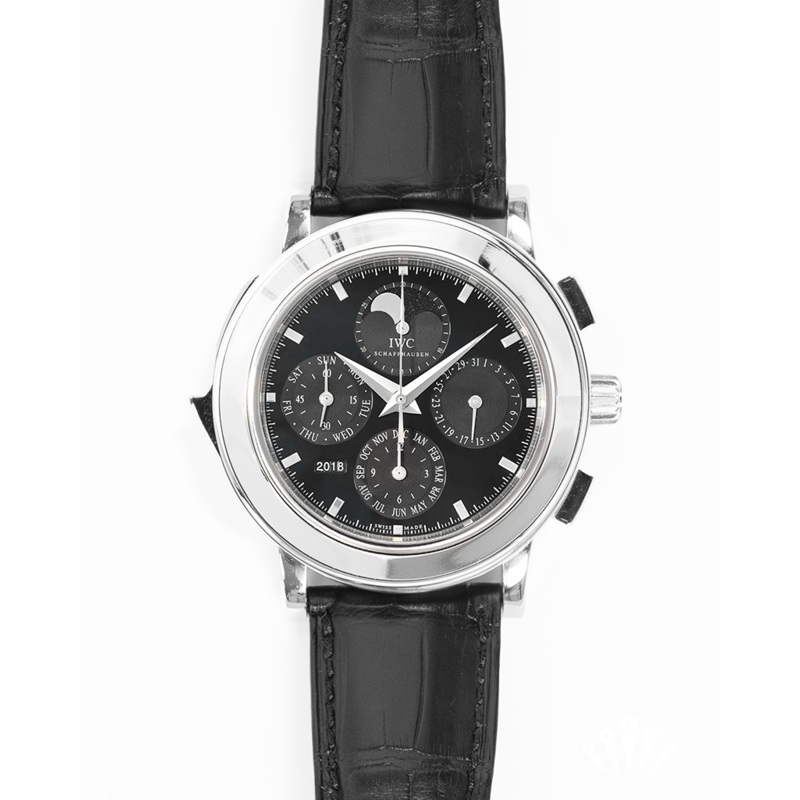 The IWC Grande Complication IW377017 is an extraordinary timepiece that showcases IWC’s mastery in haute horology, featuring one of the most complex and intricate movements the brand has ever produced. Encased in a bold 45mm solid platinum case, this model houses over 650 individual parts, creating a symphony of mechanical artistry. The dial is a masterpiece itself, elegantly designed to display an array of sophisticated complications, including a perpetual calendar, chronograph, and minute repeater. The perpetual calendar provides day, date, month, year, and moon phase displays, accurately accounting for leap years and needing no adjustment until 2100. This piece is one of 50 in the world and does not come onto the market often.
