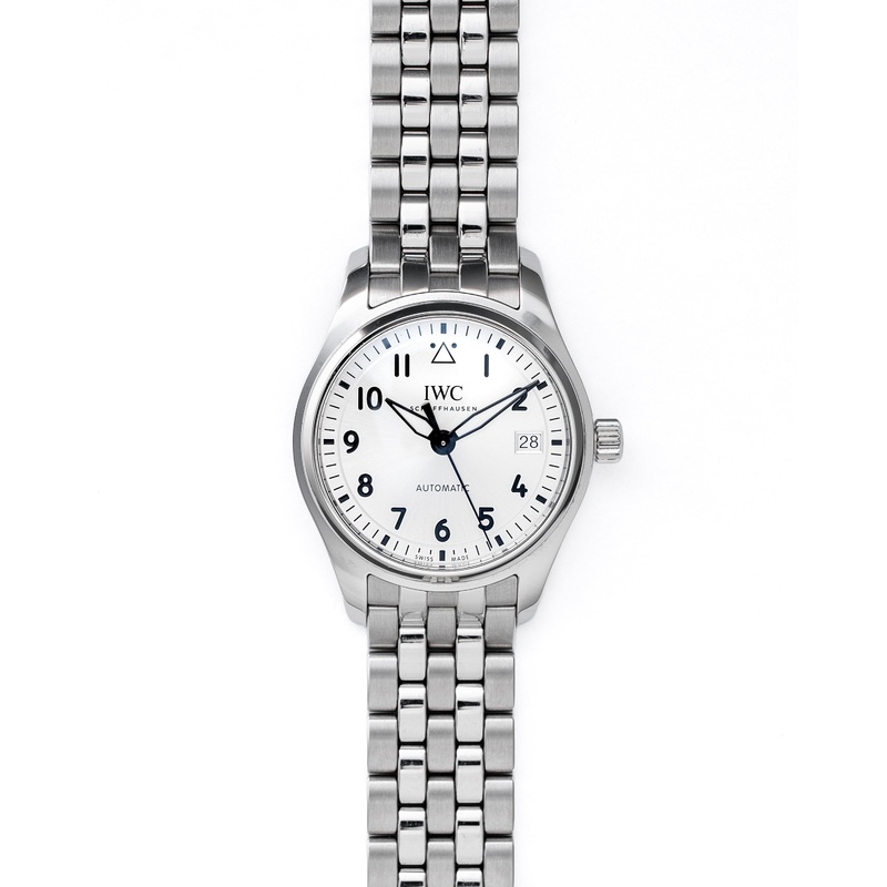 The IWC Pilots Watch IW324007 exudes a timeless elegance with its silver dial, offering a sophisticated twist on the iconic pilots watch design. Encased in a 36mm stainless steel case, this model maintains the clean, legible aesthetic synonymous with IWCs aviation heritage. The silver dial is complemented by bold black Arabic numerals and luminous hands, ensuring exceptional readability. A date display at 3 oclock adds a practical touch to the streamlined design.