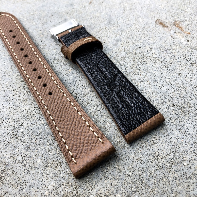 Inspired by the quality from Hermes leather goods, we have hand picked the best pebbled leather from Italy and created this handmade in straps in Hong Kong.